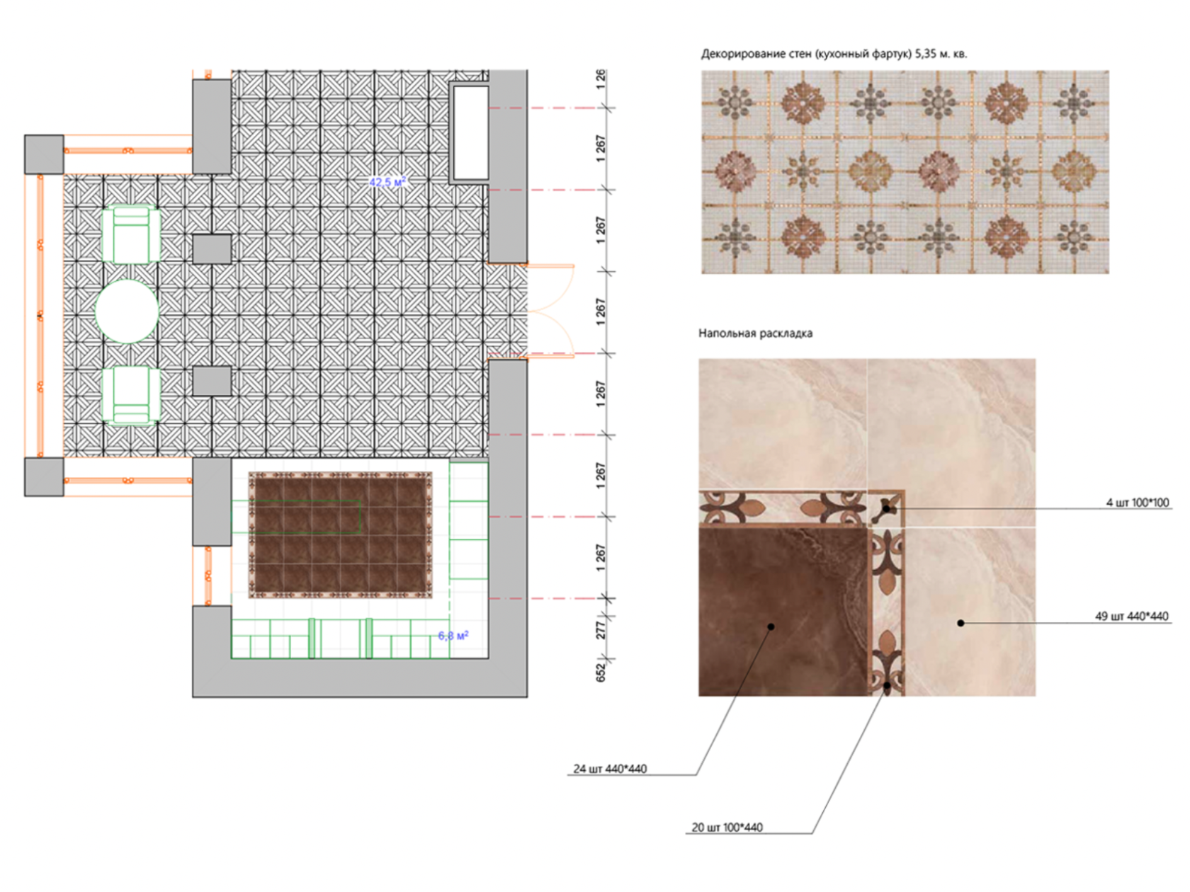 КОЛЛАЖИ. 1 этаж. Раскладка паркетного модуля и плитки.