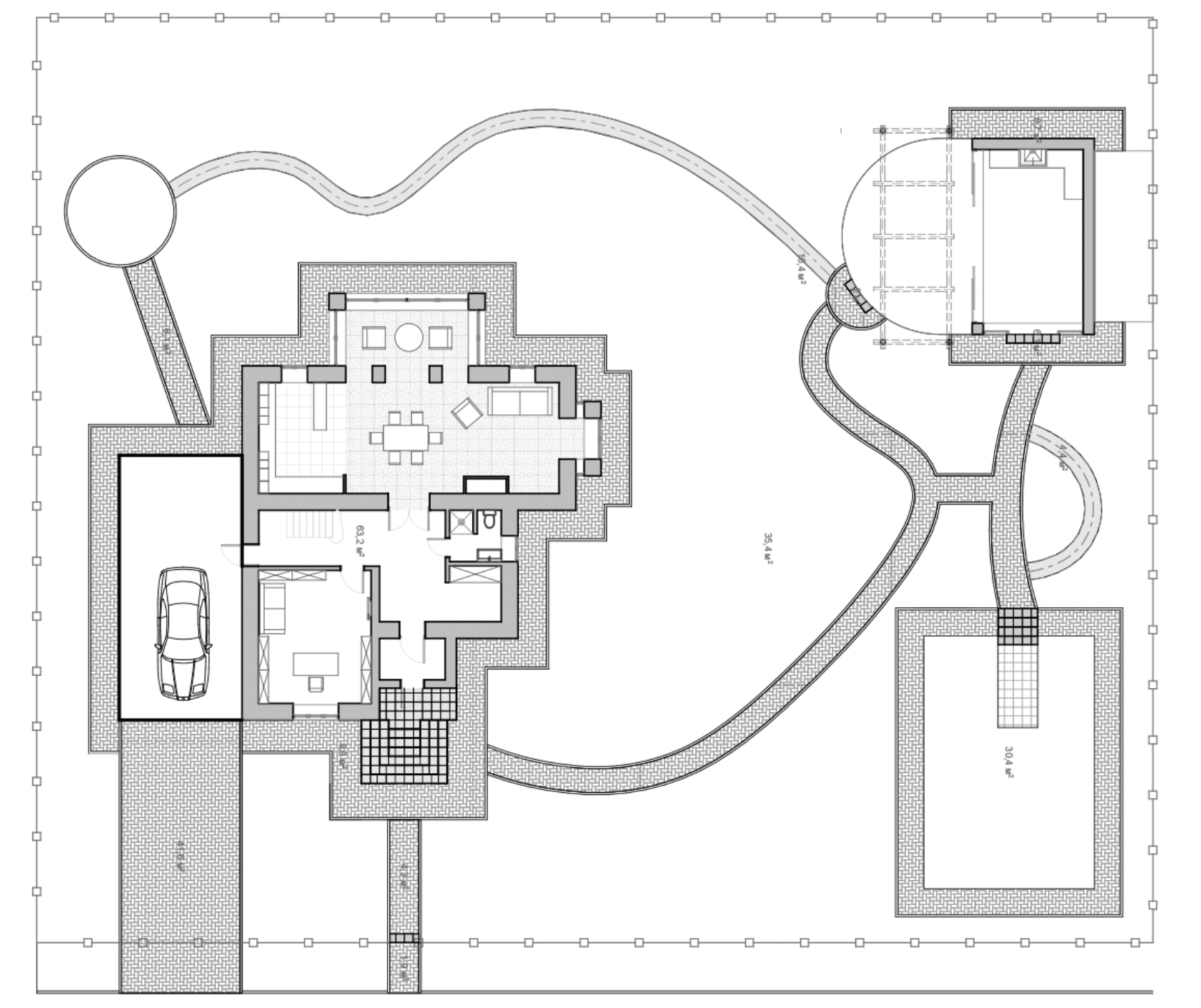 ЭСКИЗЫ. Общий план. Дом, баня, зона барбекю.